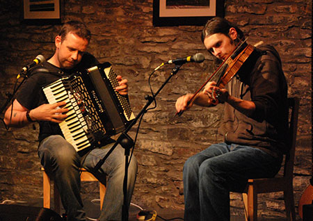 Angus Lyon (accordion, piano) and Ruaridh Campbell (fiddle, viola) are taking Scottish music into an exciting new dimension. As their brilliantly innovative 18 Months Later album confirms, their music is, at once, rich in tradition and boldly forward-looking, with arrangements that expand and develop melodic ideas with imagination, subtlety and