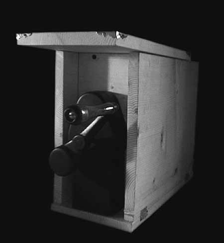 the wooden lightbox: a secret art of seeing is an exploration and reconfiguration of cinematic apparatus and emulsion. Using the early development of cinema as a marker for cultural, technological and economic change, these film cycles draw from turn of the century cinematic prototypes and long forgotten ideas surrrounding the moving image and its early promise. At the core of this approach is the use of a homebuilt hand-cranked projector in an expanded cinema format to present a striking array of handmade and processed emulsion. The vast potential of the film frame is drawn out through imagery both archaic and contemporary in shape and form. Hypnosis, panorama, motion studies, expectation, magic, the dreamworld and sleight of eye conspire in this intimate and immersive framework.